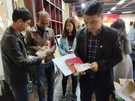 会议现场设置宣传展板,共发放扫黑除恶专项斗争宣传手册60余份,涉及党员人数70多人。