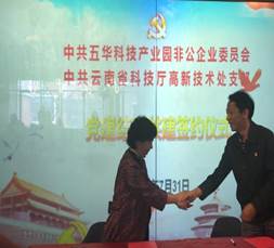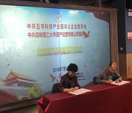 2019年7月31日上午,五华科技产业园党工委开展7月“主题党日”轮值活动,由党群活动服务中心党支部主持,邀请云南省科技厅高新技术处党支部、昆明理工大学资产经营有限公司党委到园区开展“主题党日”活动,随后,园区非公党委分别与云南省科技厅高新技术处党支部、昆明理工大学资产经营有限公司党委签订《党建结对共建协议书》。