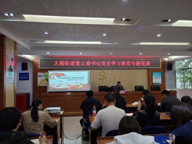 开班仪式上,大观街道党工委书记朱晓荣做了动员讲话,并带头讲了首场专题党课,强调街道党员干部要在学上做表率,严肃纪律、注重实效。同时,要聚焦街道社区中心工作,在做上见实效,切实提高运用党的创新理论指导实践、推动工作的能力,真正做到学以致用。