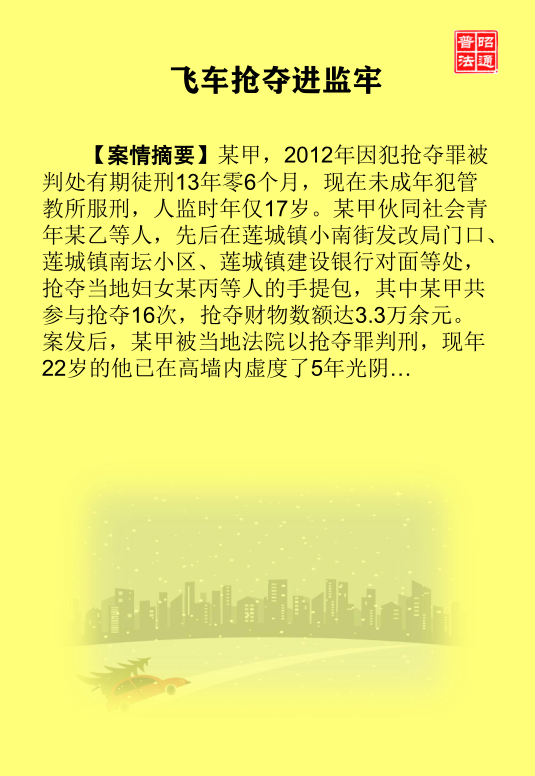【普法强基 · 以案释法】预防青少年违法犯罪法治小故事之飞车抢夺进监牢