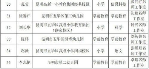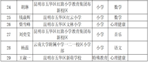 五华区关于“昆明市第十四届小学、幼儿园学科带头人和骨干教师”拟推荐名单公示