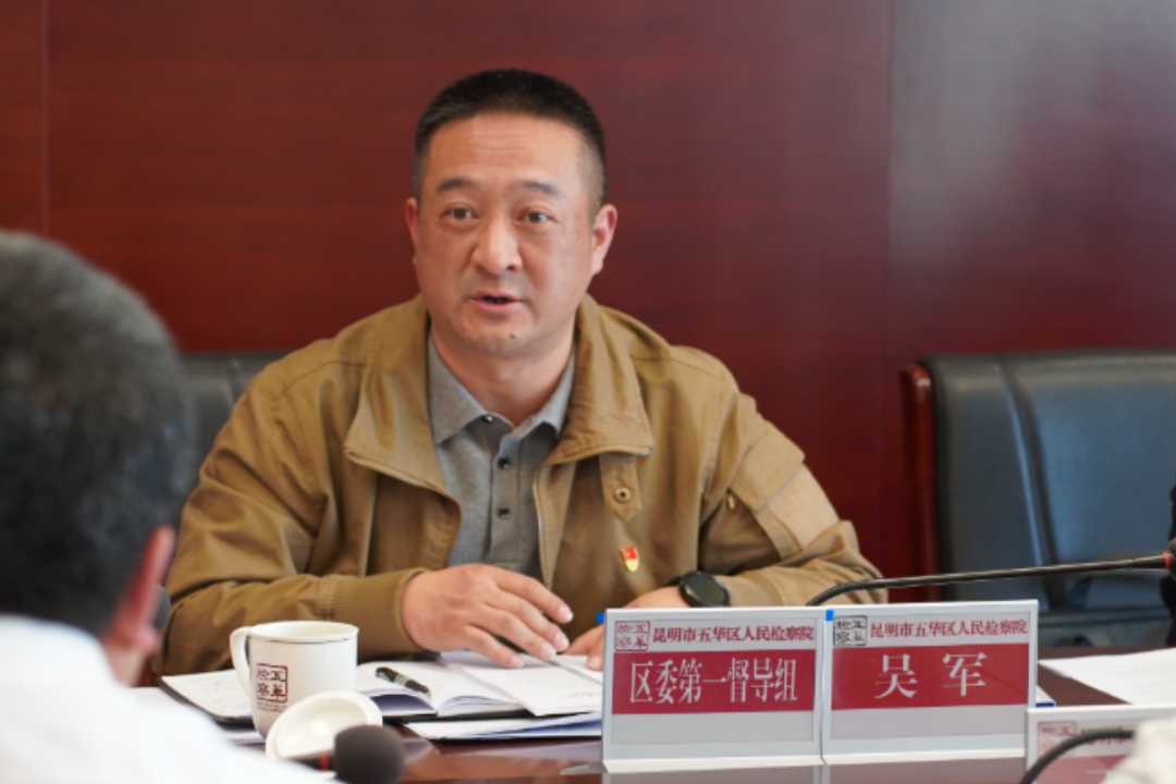 近日,中共昆明市五华区人民检察院党组召开2024年度民主生活会暨以案促改专题民主生活会。区委第一督导组副组长吴军同志带队一行3人、昆明市人民检察院检察委员会专职委员李勇同志、区委政法委副书记杨科伟同志到会指导。五华区人民检察院党组书记王蕾主持会议,科级党员领导干部列席。
