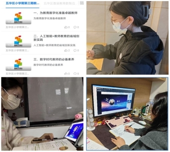 模块A:线上理论研修学习3天,结合五华区教育数字化发展实际,上线五华区人工智能助推教师队伍建设3.0课程。融合目前人工智能在基础教育领域发展的最新动态,精选八节线上培训课程,进一步推动教师主动适应信息化、人工智能等新技术变革,探索人工智能教育实施途径,创新人工智能在教育教学、管理等方面新应用。同时学校还根据自身需求开展了师德师风、心理健康、校园安全等课程学习。