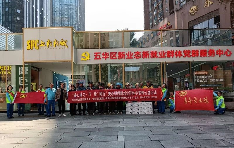 活动当天,以外卖骑手、快递员、配送员为代表的新就业群体齐聚五华区新业态新就业群体党群服务中心,分公司五华、盘龙、西山支部的党团员,身披中国石油宝石花志愿者绶带,着昆明市青年志愿者协会志愿者马夹,由青年志愿者引导新就业群体扫描需求问卷,征集工作及生活中急难愁盼问题,帮助其圆梦微心愿。开展思想教育和普法宣传,向新就业群体赠送《宪法》《民法典》等口袋书,普及《昆明市献血条例》和无偿献血科普知识,推广造血干细胞无偿捐献。依托五华区红十字会、一心堂药业集团股份有限公司开展暖“新”物资捐赠,发放急救包和医用防护口罩,为每日奔波劳作的劳动者补充饮用水,以实际行动让健康服务“行走”至百姓身边。鼓励新就业群体中的流动党员学习党章、尊崇党章,主动亮身份,到工作地或居住地党组织报到入列,推动新就业群体党员“流而有为”。
