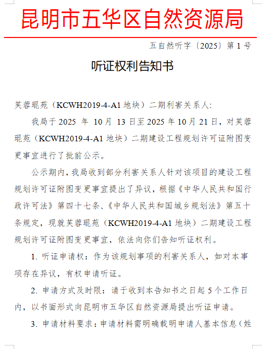 听证权利告知书(芙蓉琨苑二期附图变更)