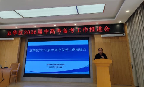为切实提升我区2026届中高考备考工作的科学性、实效性和精准性,近期五华区组织召开2026届中高考备考工作推进会。区教育体育局党组书记、局长田峰,区教育体育局副局长赵坚,区教育体育局中等教育科、民办教育科,区基础教育发展研究院,区招生考试中心,区属公民办各初中、高中学校校长、教学副校长,辖区省市属各初中、高中学校教学副校长,辖区各中学初三、高三年级组长等约170人参加会议。会议由区教育体育局赵坚副局长主持。