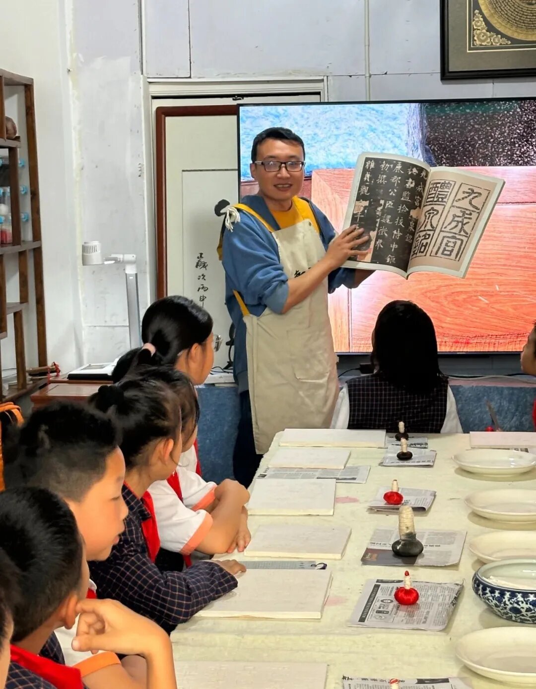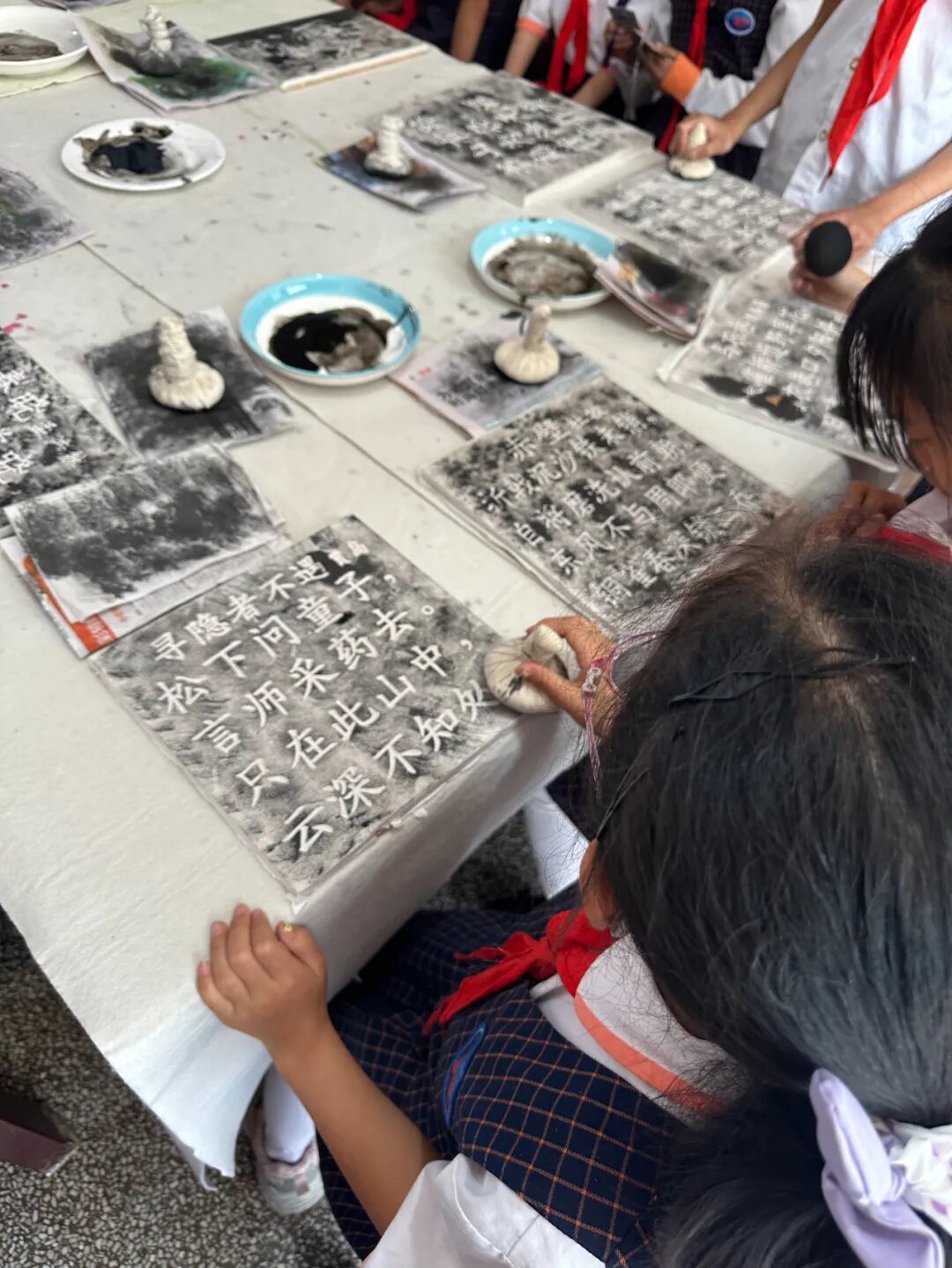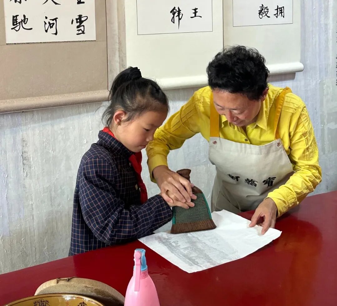 首先,由五华区文化馆非遗中心老师给孩子们介绍了非遗的相关知识,接着,张惠玲老师和张琳娜老师从滇派书画装裱的历史渊源、技艺特点、纸张的选择、工具的运用、装裱的工序以及古旧字画的修复等方面进行深入浅出的讲解,让孩子们感受到了化腐朽为神奇的力量,也让孩子们明白了坚持的可贵。孙源老师讲解了传统拓片相关知识内容并现场展示制作过程,手把手地教孩子们制作拓片。活动中,孩子们时而凝神思考、时而啧啧称赞、时而沉浸投入,亲手完成了自己的拓片作品,对孩子们来说,无疑是非常有意义的一天!