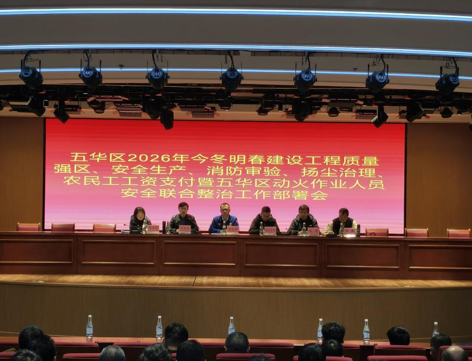 为深入贯彻落实习近平总书记关于安全生产系列重要指示精神,以及全国、省、市、区有关安全生产治本攻坚三年行动文件精神通知要求,扎实完成五华区住建领域安全生产治本攻坚三年行动任务、住建部2025年最新颁布的《住宅项目规范》GB038-2025要求,以建设安全、舒适、绿色、智慧的“好房子”为目标。做好安全生产、扬尘治理 、消防审验、农民工工资支付等相关工作,坚决防范遏制重特大事故发生,五华区于2026年1月30日召开2026年今冬明春建设工程质量强区、安全生产、消防审验、扬尘治理、农民工工资支付暨五华区动火作业人员安全联合整治工作部署会,区应急管理局、区人社局、区消防救援局相关领导、辖区在建项目的建设、施工、监理单位项目负责人参加了会议。