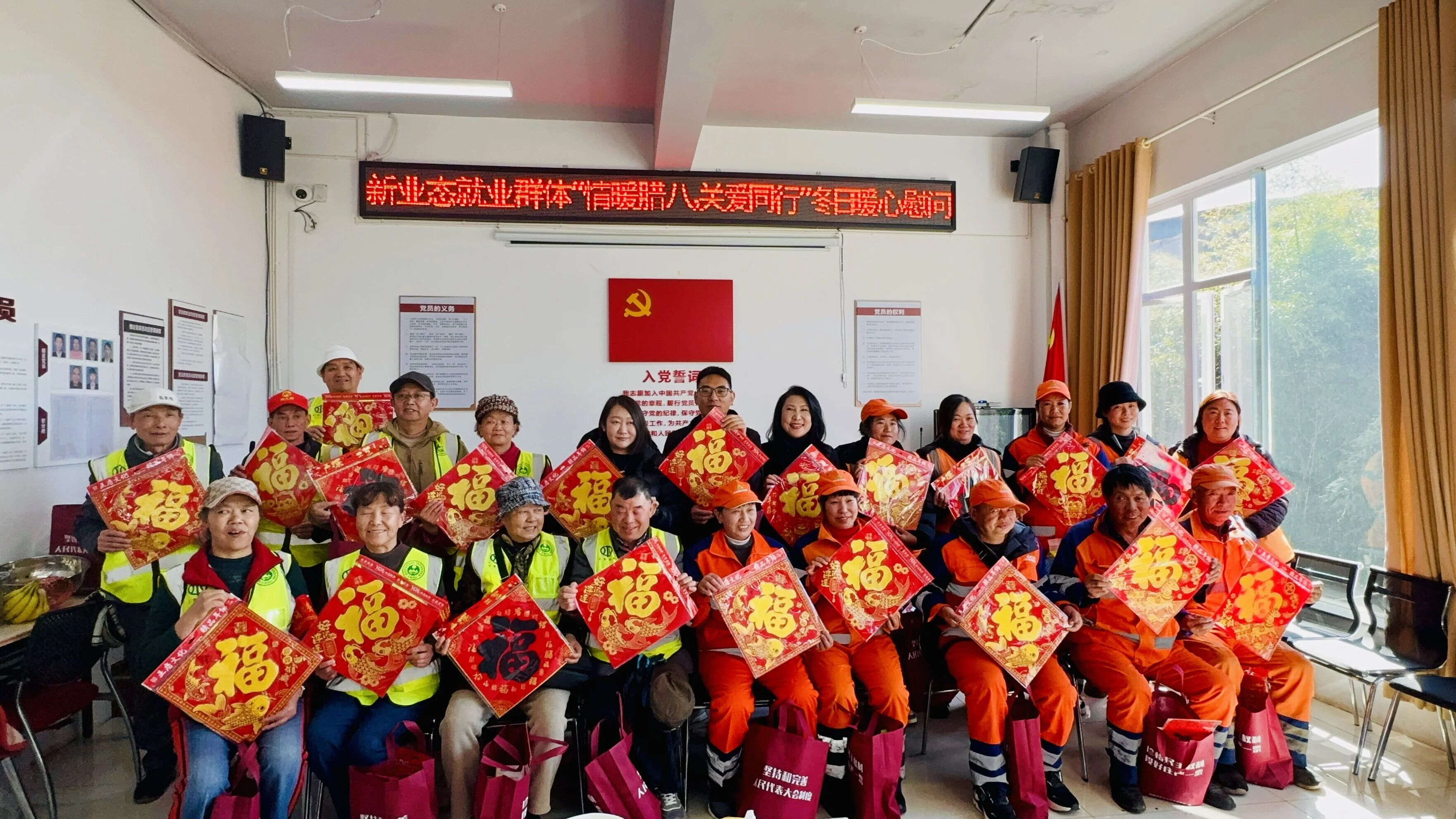 活动开篇,社区邀请讲师开展“关爱新业态新就业群体健康教育讲座”。讲师围绕户外工作者常见的冻伤防护、呼吸道疾病预防等冬季健康要点进行讲解。随后,社区为每位劳动者送上定制“福”字与暖冬礼包。礼包内包含防寒手套、暖贴等实用物资。大家手持“福”字合影留念,脸上洋溢着幸福笑容,提前感受到了新春氛围。