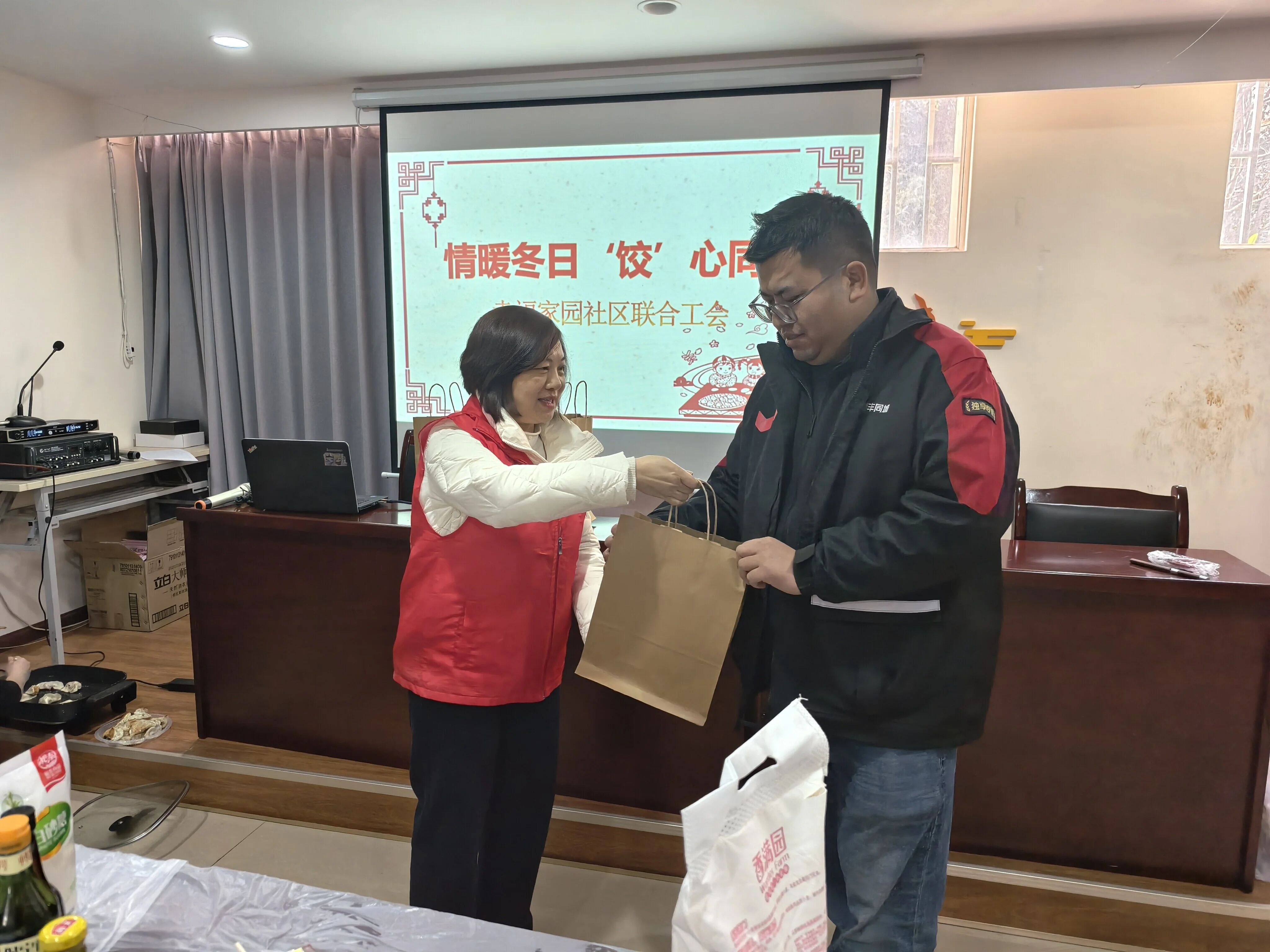 近日,在幸福家园社区活动室内,一场以“情暖冬日,‘饺’心同行”为主题的新业态新就业群体关爱活动温情开展。