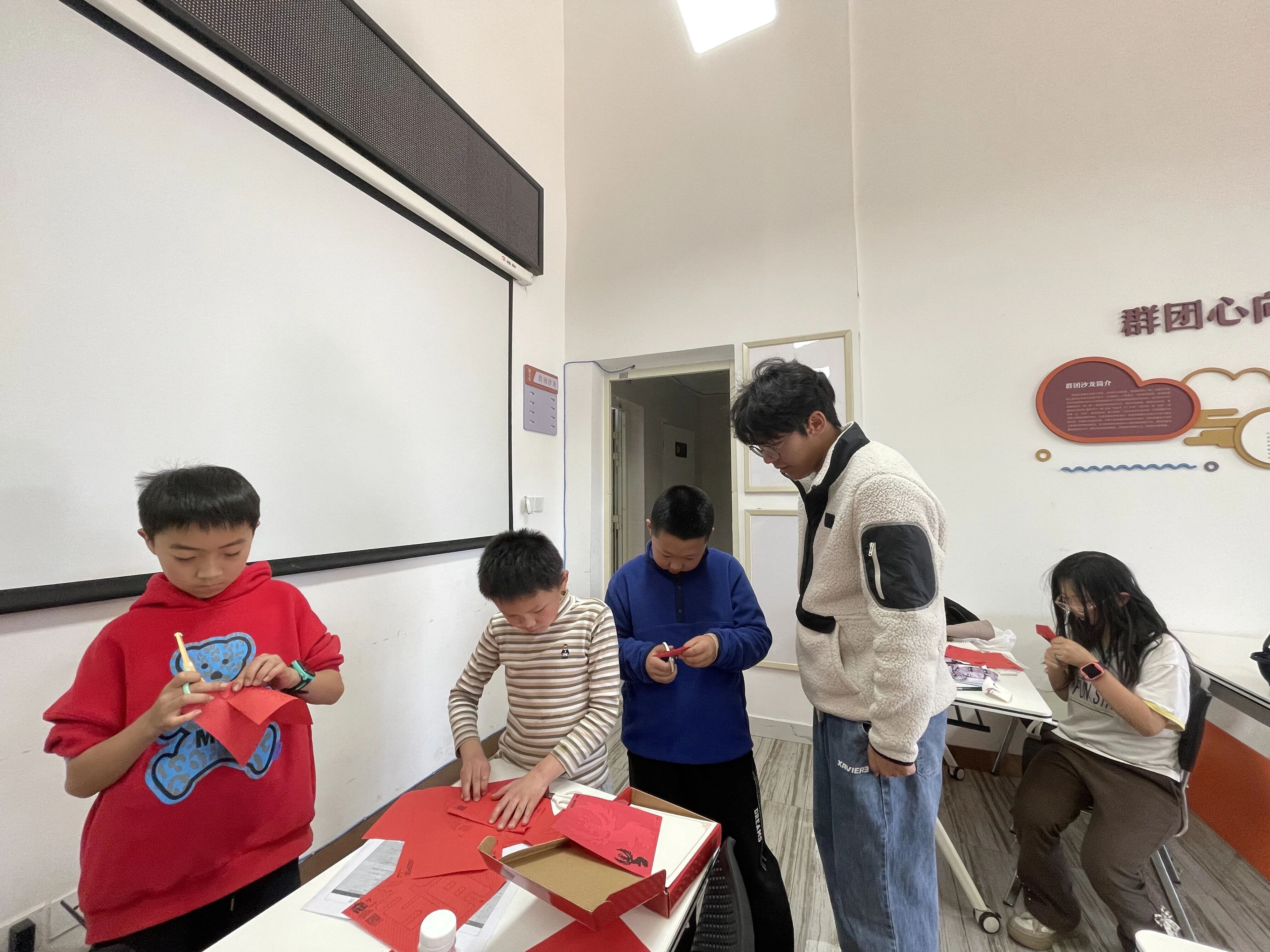 活动开始,指导老师向孩子们介绍了剪纸艺术的历史背景、地域特点与文化内涵,随后讲解了折纸方法、安全用剪须知以及图案设计与剪裁的基本技巧。通过现场分步演示,帮助孩子们快速掌握剪纸入门方法,随后,孩子们在老师的指导下,拿起红纸与安全剪刀,投入创作并尝试融入个人创意,剪制出各具特色的小作品。老师对孩子们的作品给予了充分肯定,并组织大家互相欣赏、交流心得,共享创作喜悦。