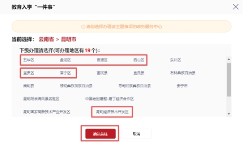 任选主城其中一个区(该选择仅作为登入系统通道,与最终入学分配无关),点击“确认前往”按钮,如下图: