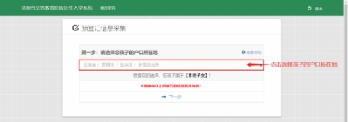 2026年昆明市主城区小学一年级网上预登记操作说明