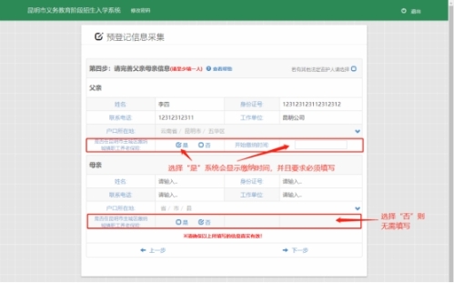 根据系统要求填写家长信息,要求至少填写一人。如下图: