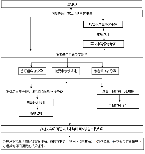 备注①:房屋用途不能为住宅,不能在学校内举办;办学场地要求在4层及以下,招收不满14周岁中小学生的,只能设置在3层及以下,有2个及以上疏散通道;