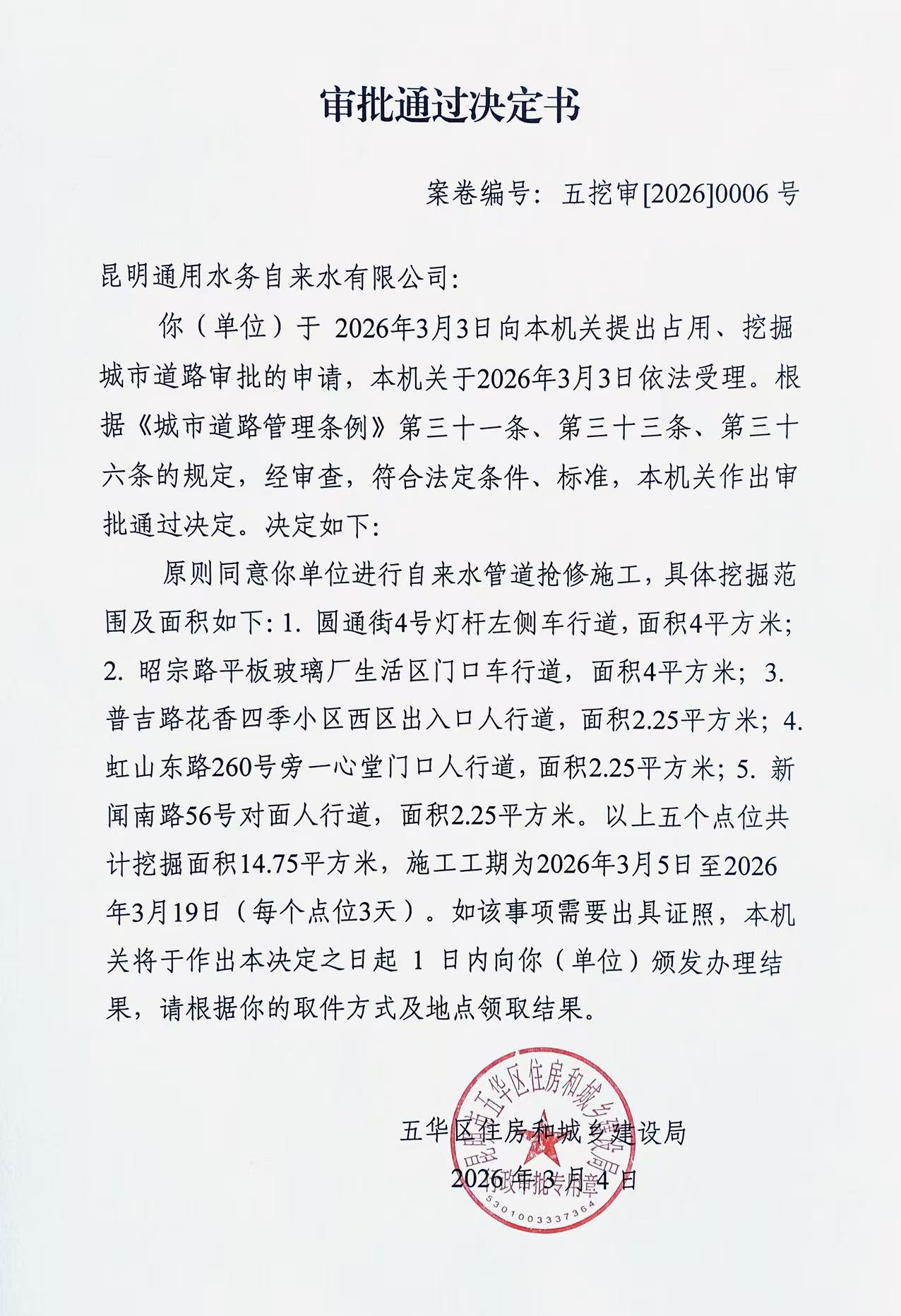 审批通过决定书(五挖审【2026】0006号)