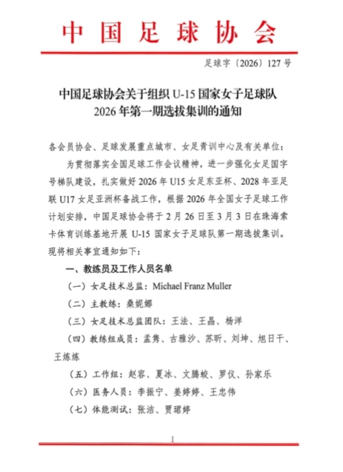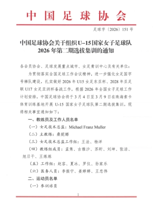 据悉,该集训是中国足协强化女足梯队建设、备战2026年U15女足东亚杯和2028年亚足联U17女足亚洲杯的关键举措。两位小将将在集训中接受专业教练团队的系统指导和选拔考核,与全国顶尖的U16女足精英同场训练、切磋交流,在国际赛事和高水平集训中锤炼技术、积累经验,为冲击亚洲赛场打下坚实基础。