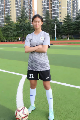 李彦凝,球队核心,司职前腰,以视野开阔、进攻犀利见长。她在全国青少年足球联赛中独进7球,两次摘得“最佳球员”称号,凭借对足球的深刻理解与不竭创造力,成为球队进攻端的“大脑”。她常说:“没有横空出世的运气,只有不为人知的努力”,这份笃定让她在追逐梦想的道路上稳步前行。