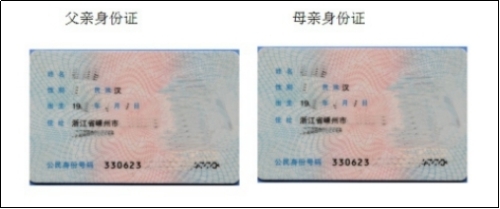 图片④:适龄儿童父亲母亲身份证有人像的一面合拍(单亲家庭可仅上传取得抚养权一方监护人身份证)。