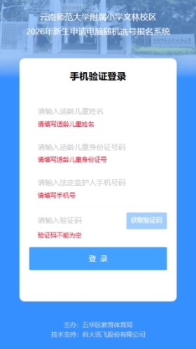 云南师范大学附属小学文林校区2026年新生申请电脑随机选号报名系统操作说明