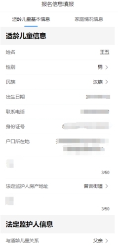 已经报名成功的法定监护人可再次登录平台查看已填报信息,如下图所示: