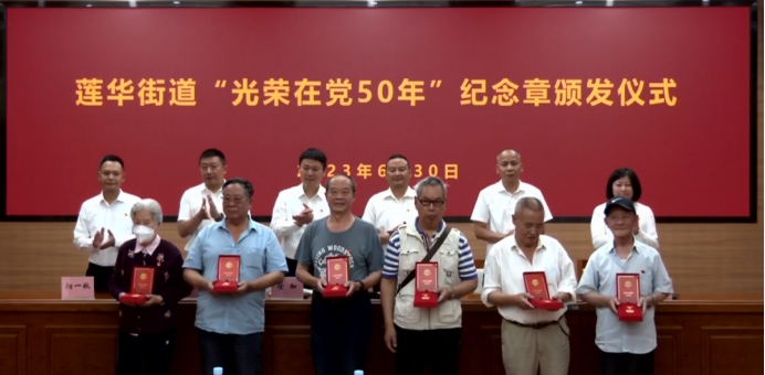 培训结束后召开了“光荣在党50年”纪念章颁发仪式、“两优一先”表彰证书颁发仪式和“共驻共建优秀单位”纪念奖杯和感谢信颁发仪式。对老党员送去节日的问候,激励各级党组织和广大共产党员对标先进、创先争优,感谢积极参与莲华街道“大工委”各社区“大党委建设的成员单位。希望大家珍惜荣誉、再接再厉,始终保持对党的事业的无限热忱。
