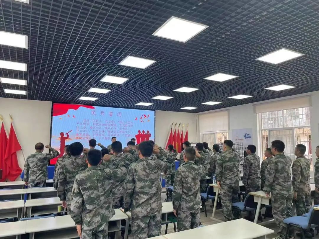 民兵点验在雄壮的《中国人民解放军军歌》中拉开帷幕。按照点验流程,依次进行了宣读民兵骨干任命命令、宣布出入队人员名单,组织点名、全体基干民兵庄严宣誓、民兵代表表态发言、龙翔街道党工委书记、武装委员会赵骞同志发言、奏唱《中国民兵之歌》等流程。
