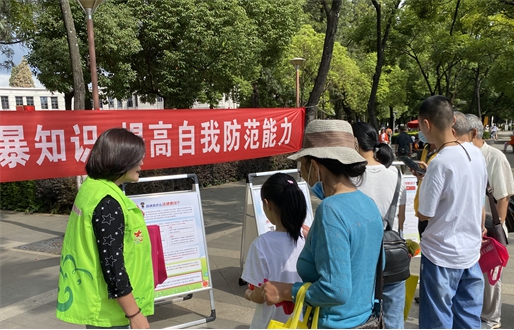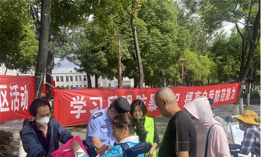 7月25日上午,昆明市五华区华山街道联合翠湖西路社区、区级普法工作队、翠湖派出所在翠湖九曲桥开展“普法强基补短板 学习反恐防暴知识”主题宣传活动,进一步增强辖区居民的反恐防恐意识,提高防范暴恐能力。