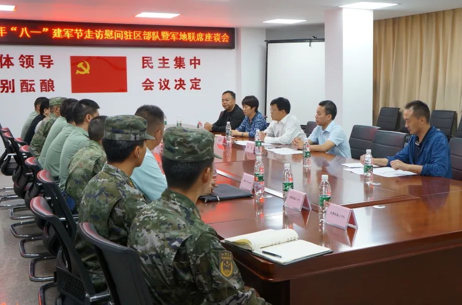 座谈会上,陈江表示,五华区的发展离不开驻区部队的大力支持和无私奉献,驻区部队官兵积极支持并参与地方建设,在加强军民共建、抢险救灾、维护社会稳定等方面发挥了重要作用,真正把驻地当故乡、视人民为亲人,五华区委、区政府将一如既往地支持驻地部队各项工作开展,加强军地共建,探索更有特色、更具亮点的双拥共建品牌,推动双拥创建活动向纵深发展。部队相关负责人对五华区长期以来对部队建设给予的支持表示感谢,表示将始终牢记人民军队的使命和宗旨,主动作为,把部队建设好、把任务完成好,继续发扬拥政爱民传统,把驻地当故乡,在抓好部队建设的同时,一如既往地参与支持地方经济社会发展,努力巩固和发展新时期军政军民团结的良好局面,不忘军民鱼水情,继续支持五华区经济社会发展。
