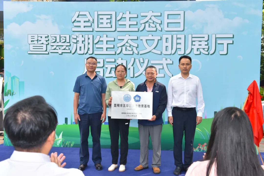 启动仪式上,翠湖生态文明展厅被授予“昆明市五华区科普教育基地”称号,出席活动的领导为展厅捐赠了相关书籍,鼓励展厅积极发挥展示、宣传、教育作用,为推动全民参与生态文明建设贡献力量。