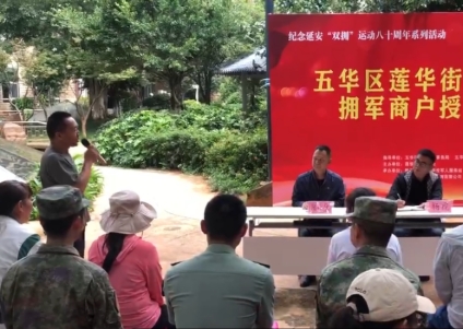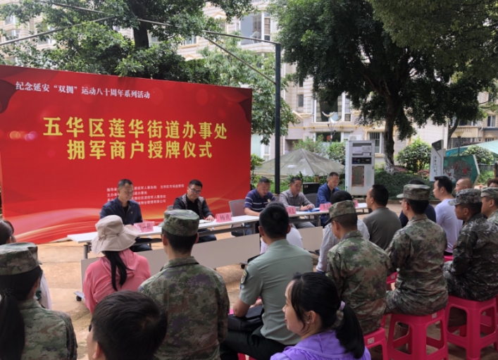授牌仪式,五华区人民武装部、退役军人事务局、市场监管局、莲华街道相关领导亲临现场,为商户代表颁发了
