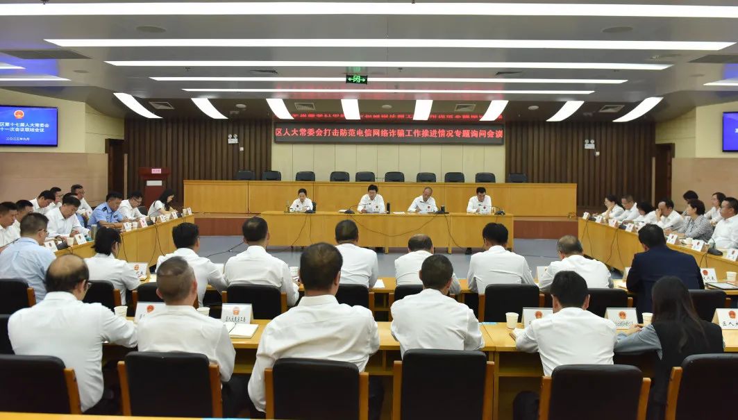 9月14日,区十七届人大常委会第十一次会议结合审议昆明市公安局五华分局打击防范电信网络诈骗工作推进情况的报告开展专题询问。会上,10位区人大常委会组成人员结合前期调查和听取审议工作报告情况,针对打击防范电信网络诈骗工作中的热点难点问题分别提问。市公安局五华分局及有关部门负责同志到会认真回答询问、听取意见,自觉接受人大监督。
