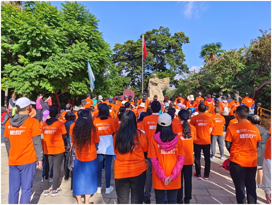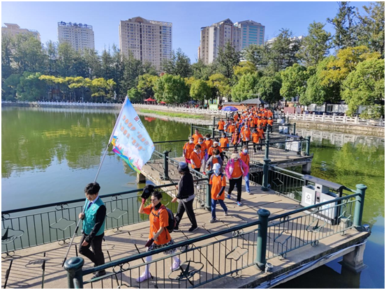 活动中,大家精神抖擞,昂首阔步,充分展现出健康、文明、积极向上的精神风貌。社区因地制宜,设计了从翠湖九曲桥出发,途经聂耳音乐广场、翠湖公园南门,到云南解放纪念馆的徒步路线。在聂耳音乐广场,全体人员齐唱国歌,厚植爱国情怀;了解聂耳生平事迹,感悟国歌的精神内涵。在云南解放纪念馆,专业讲解员为大家介绍了纪念馆的历史故事,激发爱国热情。路上草木葱郁,老人们在明媚的阳光下欣赏翠湖美丽的风景,一路欢声笑语。