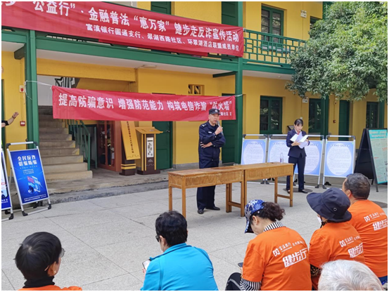 “普法强基在行动”反诈宣传环节,翠湖派出所反诈民警针对老年群体开展反诈宣传,提醒大家提高防范意识。富滇银行圆通支行工作人员也结合金融机构工作特点和案例,围绕当下金融诈骗手段等内容开展了反诈知识宣讲。