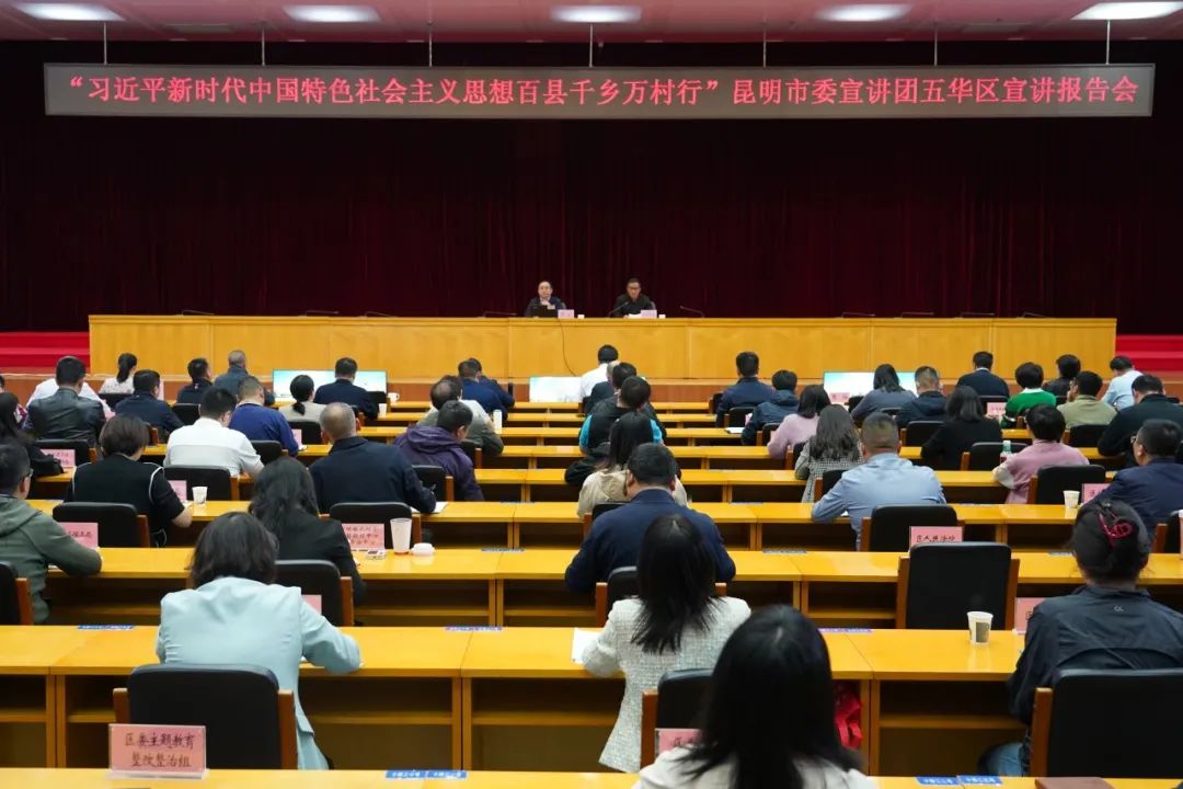 张云同志从深刻领悟“两个确立”和习近平新时代中国特色社会主义思想的重大意义、准确把握习近平新时代中国特色社会主义思想的科学体系和精髓要义、以新思想为指引,加快推动昆明社会主义现代化建设三个方面,结合昆明市、五华区实际开展宣讲。系统阐述了习近平新时代中国特色社会主义思想的形成、深刻领悟“两个确立”的决定性意义和深入领会习近平新时代中国特色社会主义思想的重大意义。