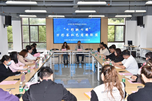 以“区域化互融、协同化治理、多元化服务、一体化共享”为理念,以“党建引领、服务联动、多方协同、共享共赢”为工作宗旨,建立政策、服务、资源、问题、需求、空间等六大清单,有效对接商圈党建资源,着力发挥社区党组织在商圈行业、产业中的桥梁和引领作用。以“营商环境圈”为直径,凝聚多方力量,成立“七彩融七圈”万彩荟红色商圈联盟,联合12家企业,形成社区、各企业联动的商圈党建格局,以高质量党建引领高质量发展。