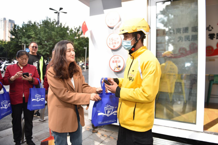 充分发挥“七彩融七圈”万彩荟红色商圈联盟协同力量,以“新就业态圈”为半径,进一步激发商圈活力,在万彩荟商圈步行街联合打造“职工之家”“快递小哥加油站”“爱心驿站”等便利服务场所,为新就业群体提供无线上网、免费茶水、休憩放松、手机充电、防雨用具、红色书籍、应急药品等基本服务项目,让快递员、外卖小哥从平日奔波穿梭在大街小巷的“送货人”变成暖心服务的“收货人”,并向新业态新就业群体提供纠纷调解、心理咨询等特色服务,形成多点辐射的红色党建商圈共同体,不断吸引商圈内各类群体主动向党组织靠拢和不断增强联盟党建活动的辐射效应。