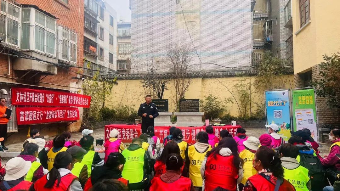 2023年11月21日华山街道组织辖区大党委单位、党员、居民群众100余人共同参与金秋健步“公益行”•“党建领航”健步走的活动,以健康、轻松的运动方式迎接初冬轻寒。此次活动由华山街道联合富滇银行圆通支行、翠湖派出所举办,文林社区承办。