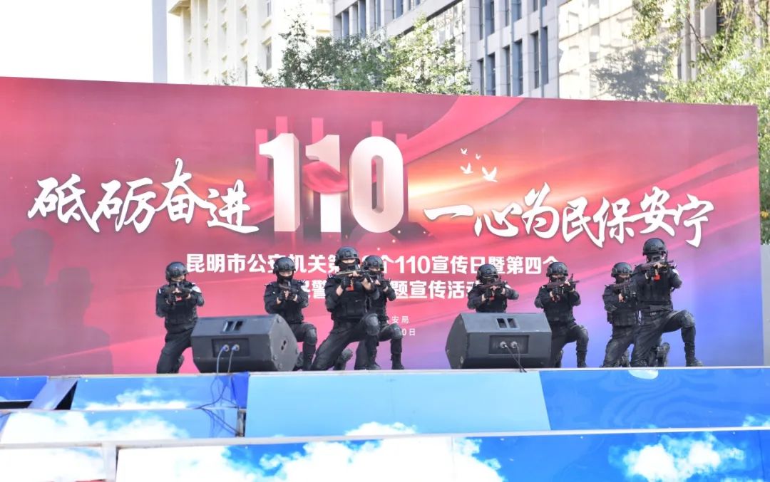 活动现场通过文艺表演、普法宣传、现场展示等形式向社会展示新时代公安的新风貌、新作为,为市民群众进行普法宣传,增进警民互动,携手共筑平安社会。主舞台上,在欢快的音乐中,激情四射的舞蹈《舞动青春》拉开了活动的序幕,乐器表演《云岭烟盒乐》、舞蹈《万疆》、独唱《人世间》《人间道》等民警自编自演的节目轮番登场,通过群众喜闻乐见的形式,展示了新时代公安铁军形象,鼓舞汇聚了警心,由巡特警队员表演的警体器械操,现场真操实练,队员们精神饱满,纪律严谨,战斗技能熟练,展现了特警勇敢顽强的战斗作风,震撼了现场观众。