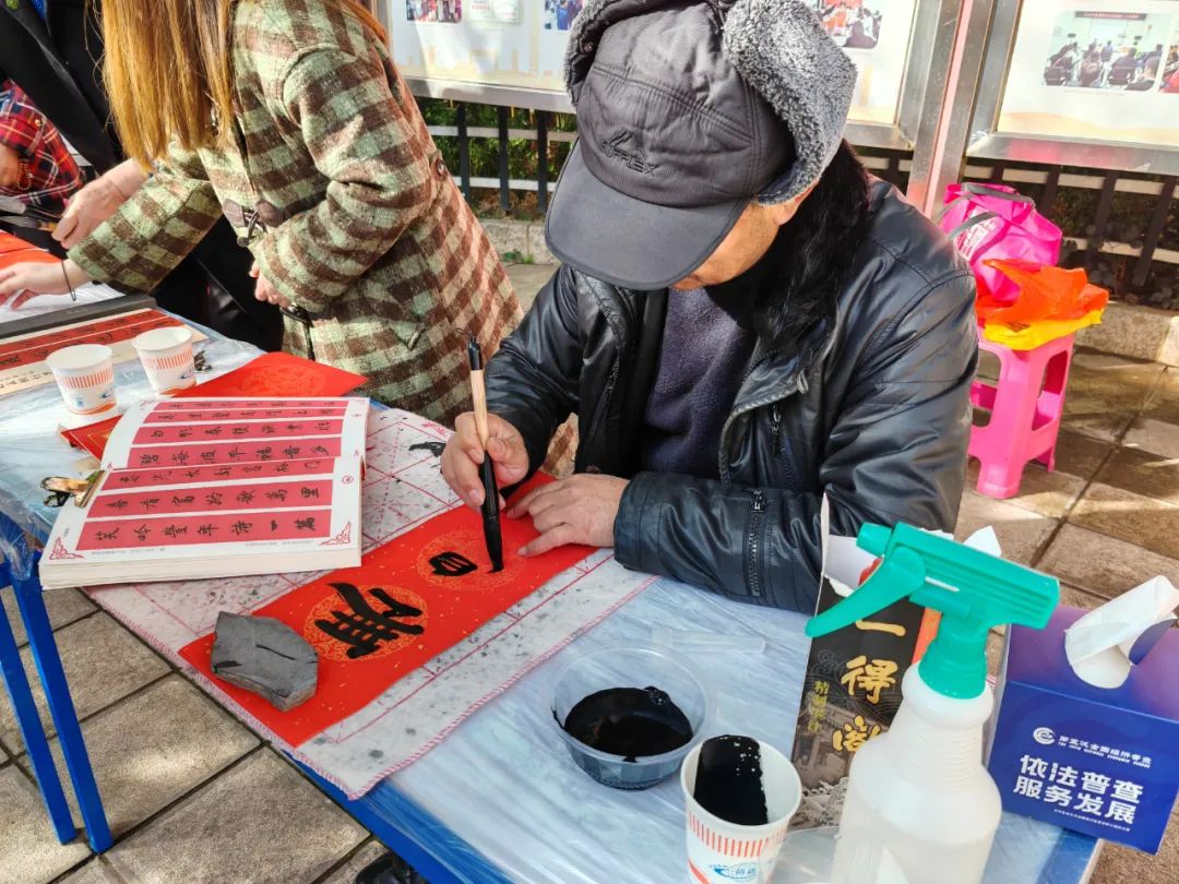 “诈骗手段千千万、反诈防骗伴平安”“不听不信慎转账、多想多思防诈骗”。活动中,书法老师现场书写一副副春联免费赠送给辖区居民,在送春联的同时,结合反诈宣传内容,向居民普及反诈知识。将反诈内容融入春联,为居民群众送上新春的祝福。同时,结合近期发生的电信网络诈骗典型案例,向现场居民群众讲述“网络刷单”“投资理财”“冒充公检法”“百万医疗保险”“机票退改签骗局”等常见的电诈案例,指导居民群众不轻信、不透露、不转账,提高安全意识,希望大家在年关都能守好自己的“钱袋子”,平平安安过新年。