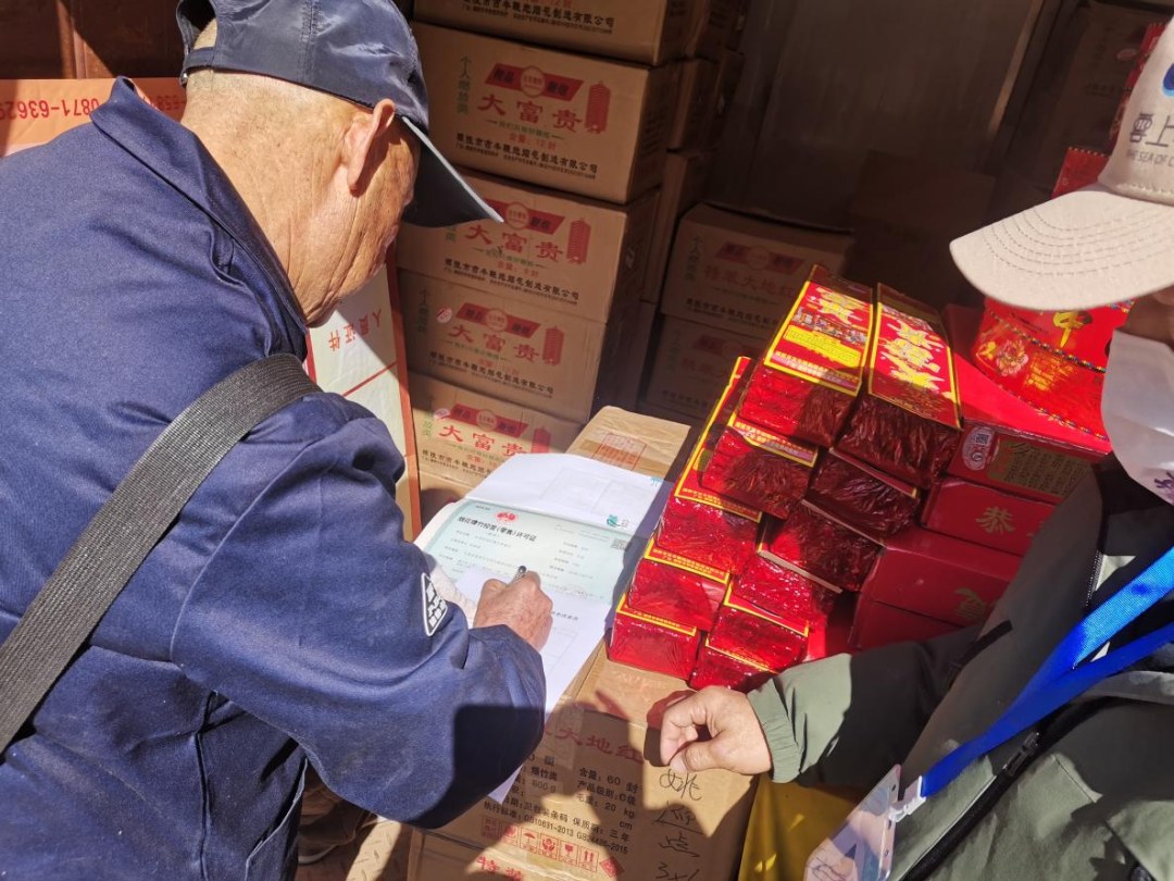 在春节即将到来之际,居民们对烟花爆竹的购买量增加,为监督好辖区烟花爆竹销售点负责人在经营中能自觉履行责任和义务,确保销售点安全,主动消除安全隐患,做好销售点位的日常管理工作。近日,莲华街道教场东路社区对辖区内烟花爆竹经营销售点进行消防安全检查。