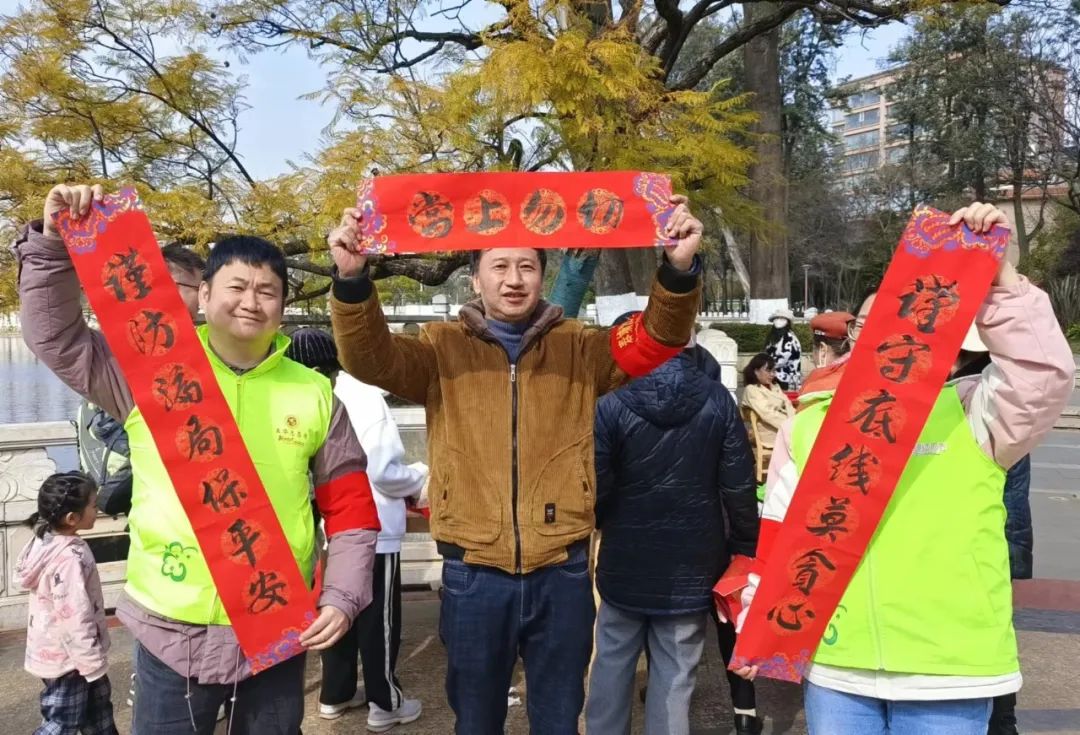 新春祝福毛笔送,趣味游戏添乐趣;北门社区齐努力,春晓广场笑声多;套圈敲锣齐上阵,飞盘灯谜多样来;贺岁新象还看谁,华山精气文化足。为进一步增强反电诈宣传氛围,不断提升社区居民防骗识骗能力,切实保护好辖区内居民的“钱袋子”。2024年2月2日北门社区联合富滇银行圆通支行在春晓广场举办“游园辞旧岁,祥龙闹新春”游园活动。