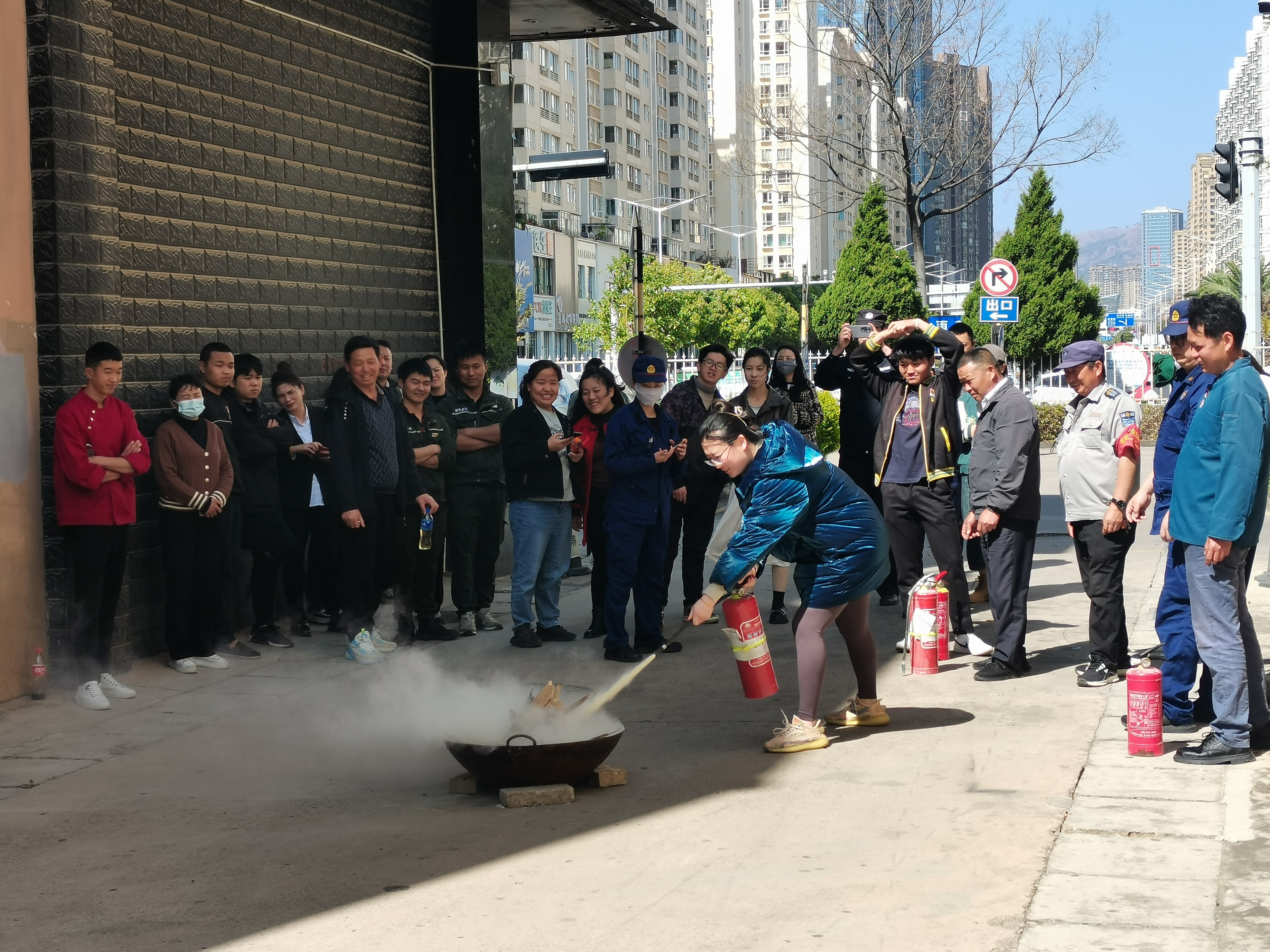3月7日,月牙塘社区联合月牙塘派出所、五华消防救援大队在辖区瑞丰龙广场为各商铺全体员工开展了一场消防安全实操演练。