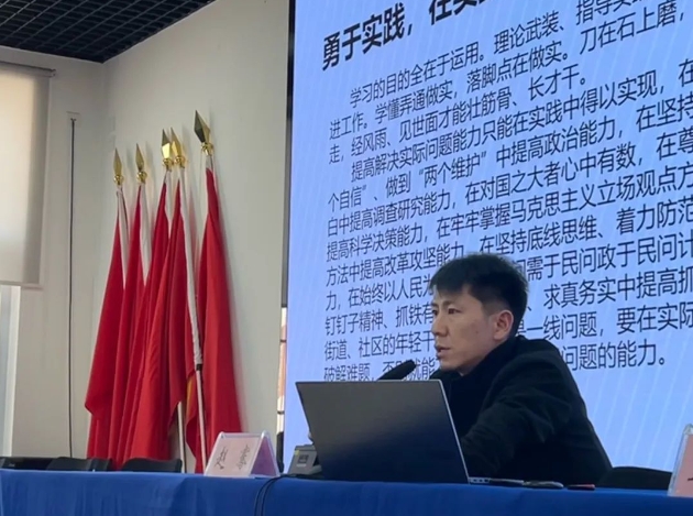 随后,街道党工委书记赵骞为学员们带来了题为《善于思考、勤于坚持、贵于细致是促进年轻干部成长的基本品质》的专题党课。赵书记在授课中强调,年轻干部要善于发现问题并不断提高解决问题的能力,同时要坚持自我修炼,养成良好的工作学习习惯,并强化作风建设,细心细致修好内功。