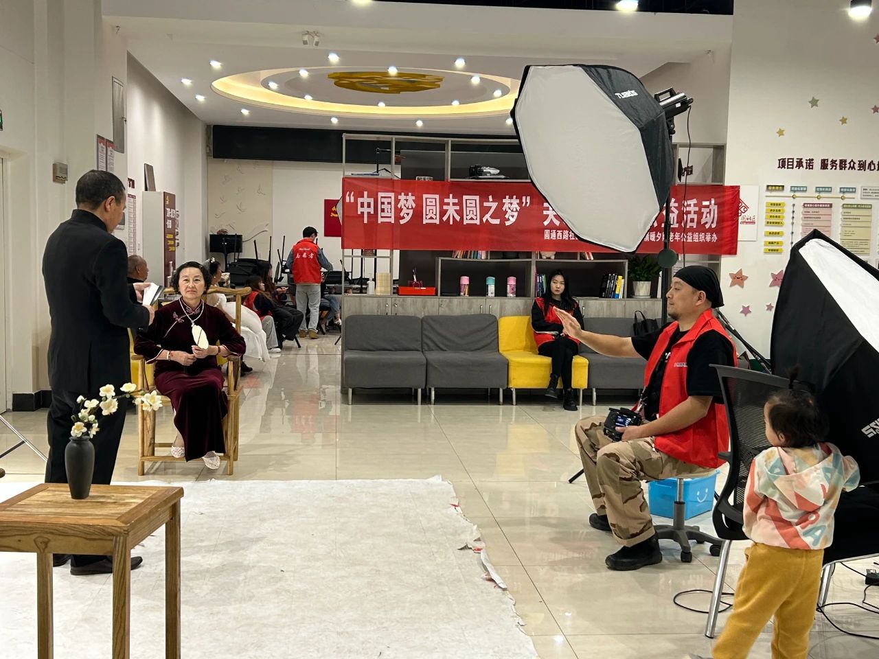 为进一步弘扬中华民族尊老为德、敬老为善、助老为乐、爱老为美的优良传统,在全社会营造关爱老年人,关注老年人生活的氛围,促进社区精神文明建设。2024年3月27日圆通西路社区新时代文明实践站联合情暖夕阳老年公益组织及乌托影像集团,于社区内开展为60岁以上的老年夫妇免费拍摄婚纱纪念照的公益活动。服务到基层,为老年人办实事,切实解决老年人行动不便照相难的问题。