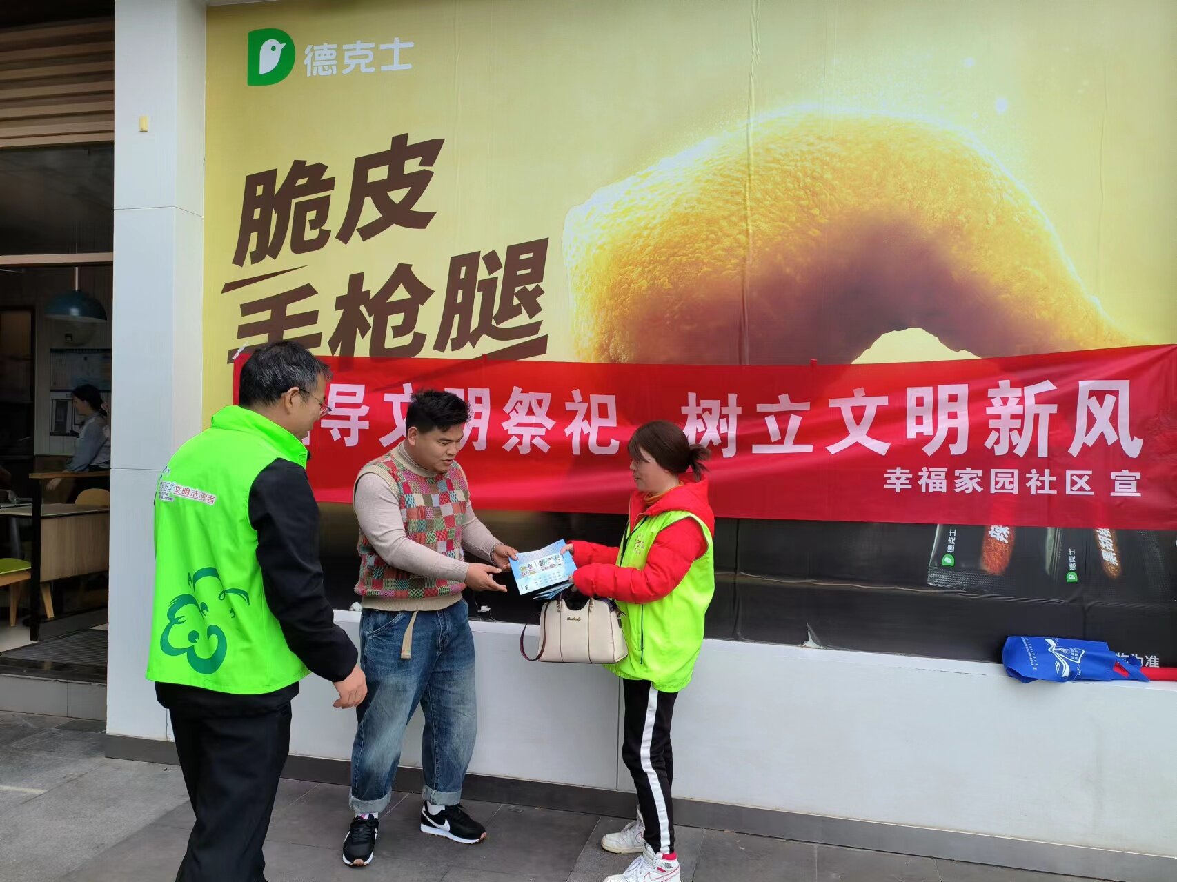 幸福家园社区组织社区党员志愿者开展了以“弘扬文明祭祀 倡导绿色清明”为主题的宣传活动。