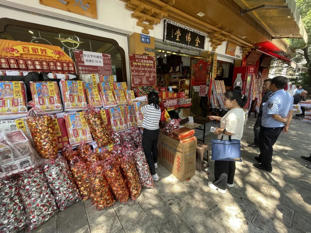 8月15日,华山街道联合辖区派出所、市场监管所、城管执法中队、社区共同开展中元节安全祭祀检查行动。
