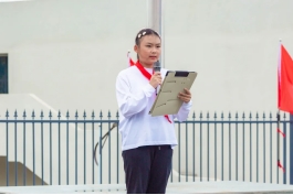 “在师恩的润泽里,我们亭亭生长。”初一年级4班胡霈怡同学代表新生们发言。