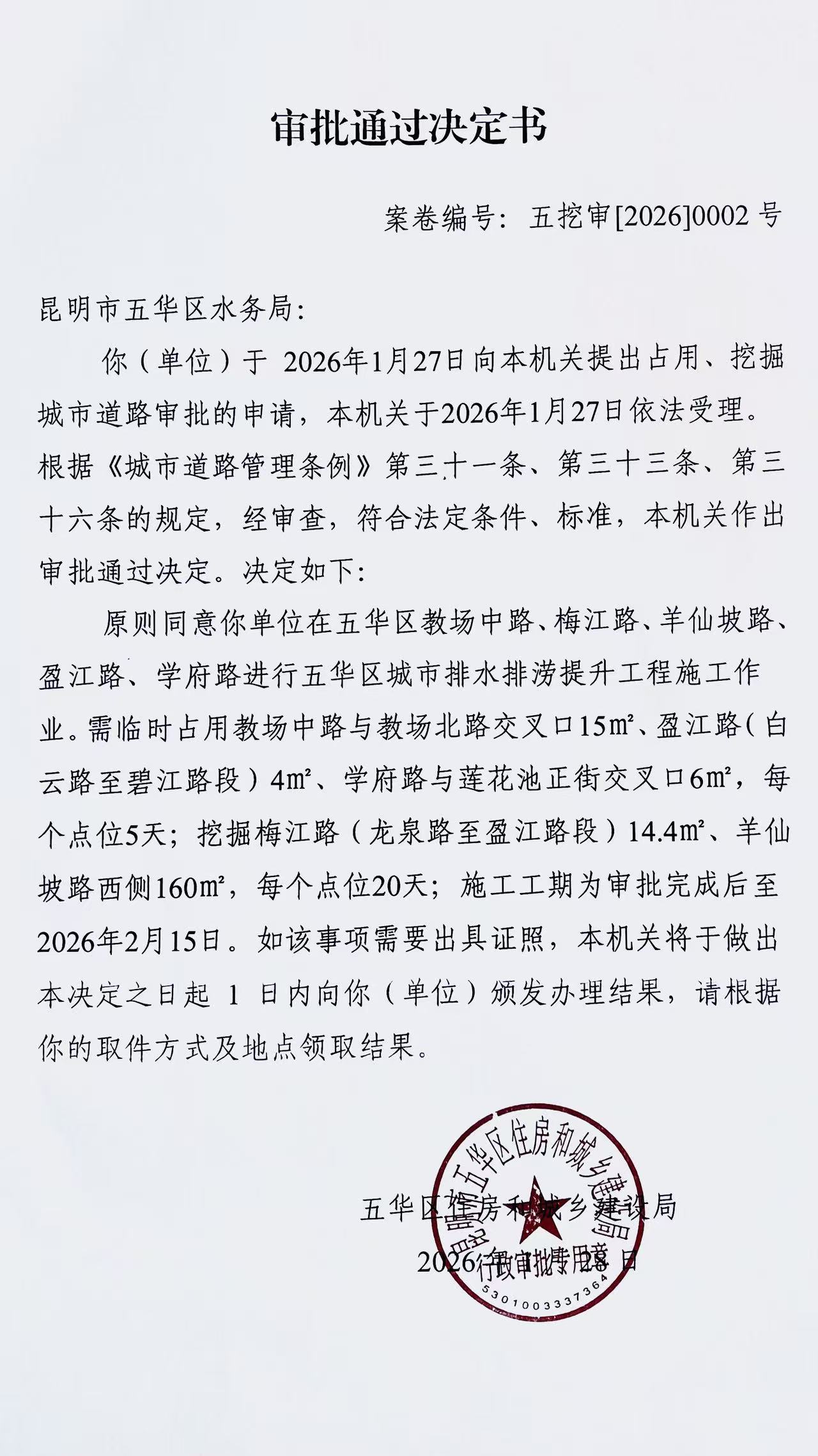 审批通过决定书(五挖审【2026】0002号