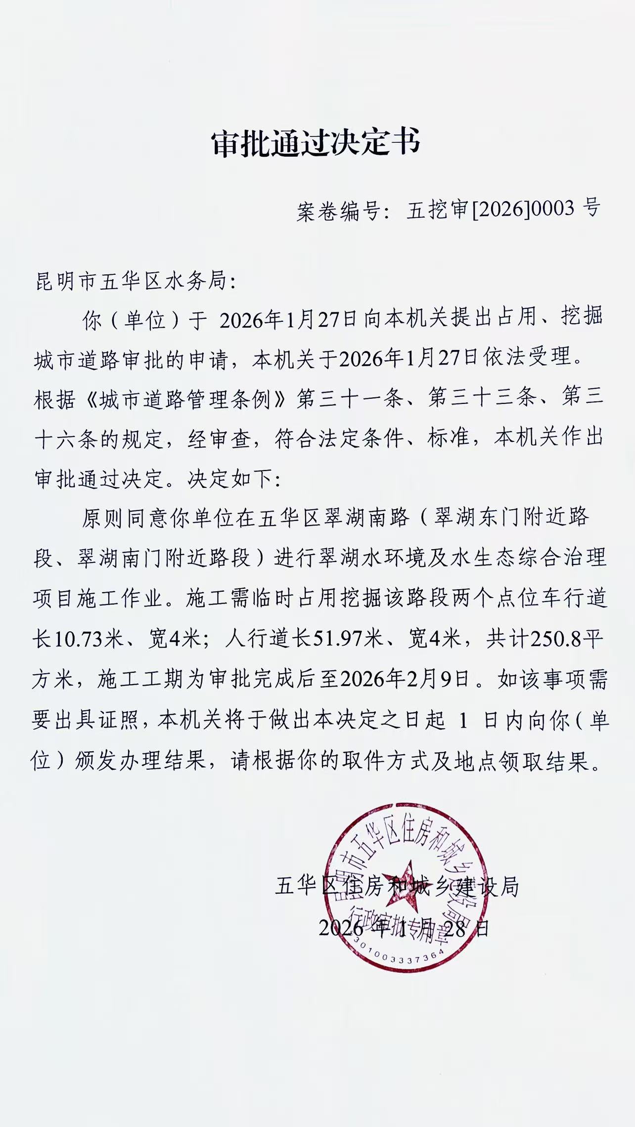 审批通过决定书(五挖审【2026】0003号